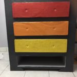 Cette commode en carton avait besoin d’un petit coup de peinture pour être assortie à la nouvelle décoration de la chambre. La customisation a été réalisée en association les couleurs de son lieu de destination.